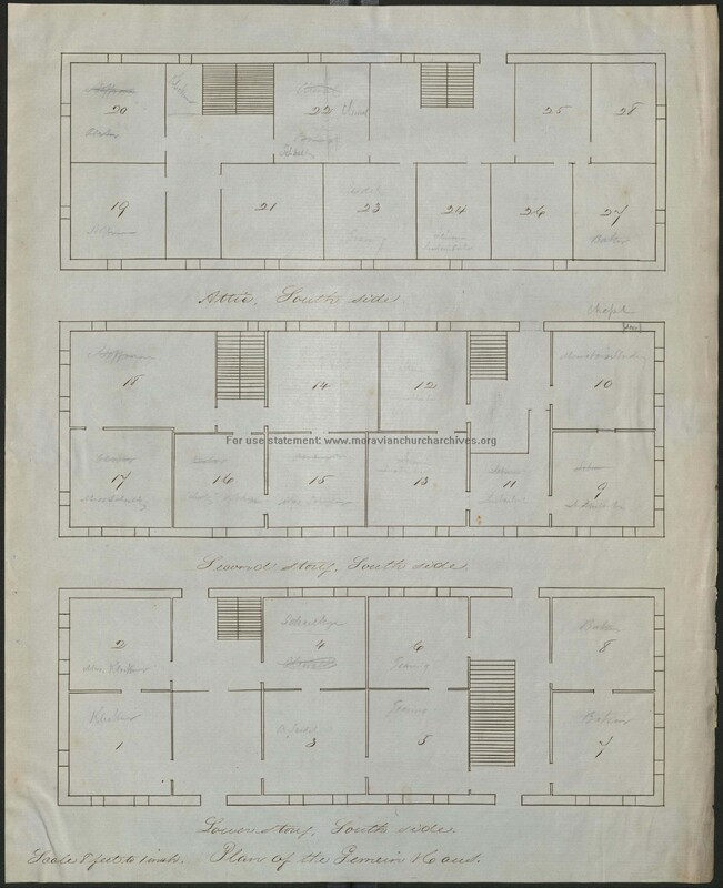 Huber moved to Nazareth during the General Economy period. She cared for the community’s sick and oversaw the nursery, which was located in this building. Children between the ages of 18 months and four years lived together in the nursery under the care of a few Single Sisters. The nursery allowed parents to contribute to the General Economy without the interruption of child rearing. Children in the nursery learned hymns by heart and practiced remaining attentive throughout religious services. At bedtime, the children sang an evening hymn.