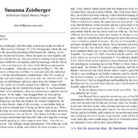 Susanna Zeisberger recounts her birth in Lancaster, Pennsylvania, and her move to Lititz, Pennsylvania, at the age of 16. She was called to a mission to the Indians, along with her husband, where they were attacked and held prisoners. The whole time, her faith was unwavering. She went back to Lititz in 1809. Her memoir ends in 1816 and her last years and final illness are described by a member of her Choir.