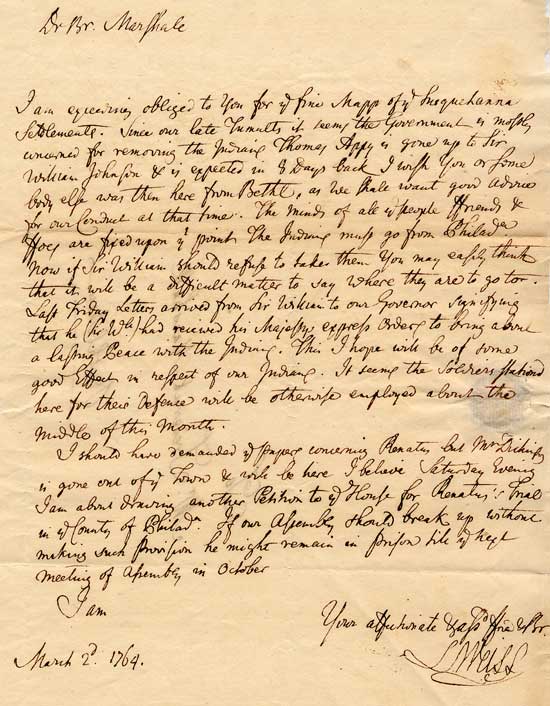 1764 Letter from Lewis Weiss to Frederick Marshall