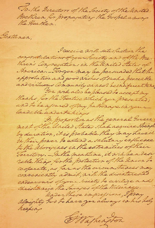 1789 Letter to the Directors of the Society of the United Brethren from George Washington