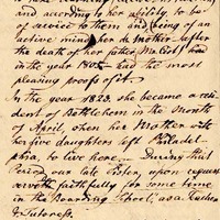 To her parents, who were paying due attention to the education of their children it was a matter of great satisfaction to perceive in her early marks of an obliging dutiful disposition towards them and at the same time, a ready willingness to take learning (receive instruction) and, according to her ability to be of service to them and being of an active mind her dear mother after the death of her father (Mr. Cist) in the year 1805 – had the most pleasing proofs of it.