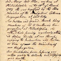Our departed Sr. Rebecca Cist, oldest daughter of our late friend, Mr. Charles S. Cist and Mary late Wise – was born at Philadelphia on the 19th of March 1787. She was baptized by the then minister of the evangelical Lutheran Congregation of said city.