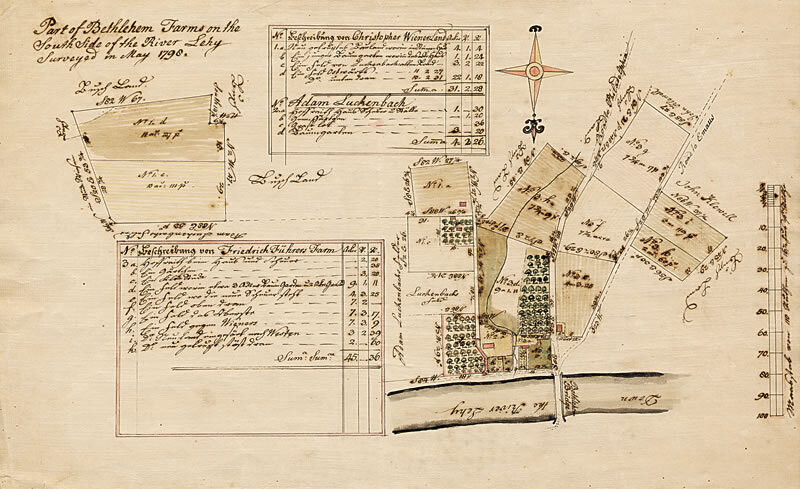 Survey map of the farms south of the Lehigh River by Bethlehem