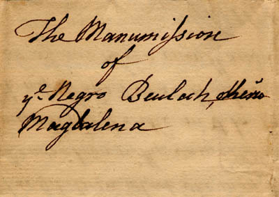 Whereas many years ago I bought & purchased with my own monies a certain Negroe Girl, which I think is of her Kingdom or Country of Angola in Africa, & which I called Beulah, but at her baptism at Bethlehem in the County of Bucks in the said Province received the name of Magdalena. The cause of which purchase of her was not with any intention of worldly gain by continuing her in Slavery all the days of her life but partly for the service of my dear wife Susanna, who is since deceased, & partly in mercy to prevent other persons from buying her for filthy sucre's sake without any regard to her everlasting interest[.] I therefore as soon as I well could sent the said Negroe to the Congregation of the United-Brethren at Bethlehem aforesaid who were so kind as to take her under their care which was five years ago or thereabout, where she hath abode with my good-likeing[sic] ever since & I hope & believe hath by the Brethren's care & instruction received Faith in our blessed Saviour Christ Jesus & an interest & nearness to & in the merits of his death & sufferings[.] I have nevertheless always declined making any Sale or Alienation of my Right & Property to her personal services even with any of the Brethren aforesaid from this consideration viz. I have consider'd my Property in her by the Providence of God to be only a deposition or trust committed to my care & as the members of the aforsd. United-Brethren frequently travel abroad by land & sea & one cannot foresee all events & as the poor Negroes or Africans are generally made Slaves of by every Nation & Religion of the Europeans into whose hands or power they fall therefore should I part with my Right & property absolutely. I should thereby put it out of my power to reclaim her and on the other sides I would for the cause above setforth, prevent my Heirs, Execor. or Adms. after my decease as well as other to infringe the liberty of my said Negroe Woman Beulah now called Magdalena or of her Children, if please God she shall have any, I have therefore devised the expedient of manumising [sic] her & her Children absolutely. With & under the power of my revocation & making null & void that manumission if I myself shall think fit to revoke it in my life time & not else.